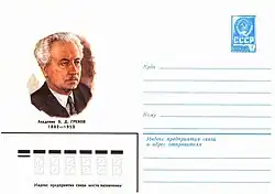 Boris Dmitrievich Grekov (Russian: Борис Дмитрович Греков; 21 April [O.S. 9 April] 1882 – 9 September 1953) was a Russian and Soviet historian noted for his comprehensive studies of Kievan Rus and the Golden Horde. He was a member of the Soviet Academy of Sciences (1934) and several foreign academies, as well as Director of the Saint Petersburg Institute of History and the Russian History Institute in Moscow.
