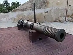 Today the fort houses the Museum of Arms (French: Musée des armes). Founded in 1963, it was the first museum in Morocco specializing in the history of arms and armour.[5] Its collection includes up to 5000 pieces (only a part of which are on display) originating from 35 countries and dating from prehistory to the 20th century.[5] The museum emphasizes the collection of Moroccan arms, and features a large number that were manufactured in Fez in the Makina, an industrial arms factory established in 1886 next to the Royal Palace in Fez. One of the notable artifacts on display is an enormous Saadian cannon that was used during the Battle of Three Kings in 1578, nearly 5 meters long and weighing around 12 tons.[6]