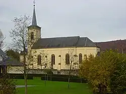 Born (Luxembourgish: Bur meaning spring or fountain, French: Born-sur-Sûre, German: Born an der Sauer) is a village on the River Sauer in the commune of Mompach, in eastern Luxembourg. It lies on the N10, 14 km (9 mi) south of Echternach and 8 km (5 mi) north of Wasserbillig. Only a 5 minute drive from the E44 motorway from Luxembourg City to Trier, it is popular with tourists and day-trippers who walk, cycle or fish along the banks of the river.