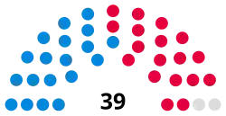 Since the last boundary changes in 2004 the council has comprised 39 councillors representing 17 wards, with each ward election one, two or three councillors. Elections are held every four years.[29]