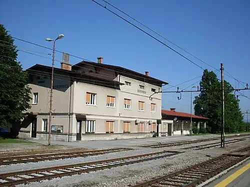 Borovnica railway station (Slovene: Železniška postaja Borovnica) is the principal railway station in Borovnica, Slovenia. The old building of the station was built in 1856 at the beginning of Borovnica Viaduct. It stayed in use until the viaduct was demolished during World War II in the 1940s. The new station building was built and opened in 1947.