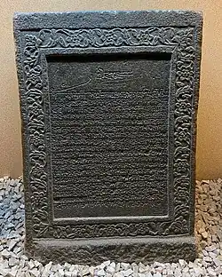 The Borphukan's residence was situated in the present Fancy Bazaar area of Guwahati. The Borphukan's council was similar to the council-hall (Bor-Chora) at the capital and consisted of six Phukans collectively called the Guwahatiya or Dopdariya Phukan.[5] The Borphukan Bor-Chora or the Durbar Hall was situated near the present Sonaram High School and site occupied by the Bharalumukh Thana. Two finely chiseled and inscribed rectangular blocks of stone have been found in the premises of the Kamrupa Anusandhan Samiti, currently the Assam State Museum. The texts engraved with borders of which are ornamented by creepers. These inscribed stones were posted at the southern and northern entrances to the council hall. We learn from the inscriptions that the two gates were known respectively as Bijay-Duar and Jay-Duar were constructed in 1660 Saka (1738) by Tarun Duara Borphukan under the orders of King Siva Singha. The Borphukan was assisted in administration by the Majindar Baruah (equivalent to a private secretary) whose residence was at the current Deputy Commissioner's residence.