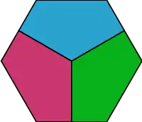 An example of a hexagon cut into three pieces of smaller diameter.