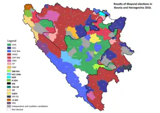 Municipal elections were held in Bosnia and Herzegovina on 2 October 2016 to elect mayors and assemblies in 144 municipalities and cities.