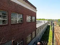 General Electric acquired most of the right of way through Lynn for expansion of the River Works plant during World War II, likely as settlement for debt still owed on the electrification project.[22] GE later sold off its sections: one piece to a private developer in 1989, the piece near Commercial Street to the MBTA in 1991 (part of which was later sold to the same developer), and the western section to a different developer in 2014.[23][24] New England Power Company (also a National Grid subsidiary) maintains an easement through the western section for electrical transmission lines.[25]