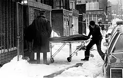 Young, "Ah B", and the three assailants fled in different directions after Lee was shot.[4] Five of the six victims were killed: Cheung, Lam, Luu, Son, and Van Tran.[3][12] Two security guards were stationed at the emergency room of the nearby New England Medical Center (NEMC) on Harrison Street and may have heard the shots; one of the guards attributed the sound to a snowplow going over a manhole cover, while the other had not noticed any sounds.[8]: 10 The guard later testified the sounds had occurred around 3:30 am.[24]: 4