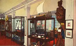 The Boston Marine Museum (1909–1947) in Boston, Massachusetts, specialized in maritime history. Its collections were displayed in the Old State House in rooms borrowed from the Bostonian Society.[1][2] Among the objects in the museum were figureheads; model ships; "whaling implements, ... prints and pictures;"[3] manuscripts;[nb 1]publications;[nb 2] and "curios and relics of the seafaring life of New England."[7] Leaders of the museum included John Templeman Coolidge,[8] Alexander Wadsworth Longfellow Jr.,[7] and Robert B. Smith.[9] In 1947 the museum merged into the Bostonian Society.[10]
