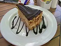 A Boston cream pie is a cake with a custard filling.[1] The dessert acquired its name when cakes and pies were baked in the same pans, and the words were used interchangeably.[2] In the late 19th century, this type of cake was variously called a "cream pie", a "chocolate cream pie", or a "custard cake".[2] The cake has been popular in Massachusetts since its creation.[3]