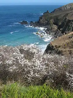 The hamlet contains Boswednack Manor and Treen Manor which in 1814 were both owned by William Arundell Harris.[5] Treen Manor, in the nearby hamlet of Treen is now a pub and Boswednack Manor is now run as a bed & breakfast, with a "slight Bohemian-style".[6][7]