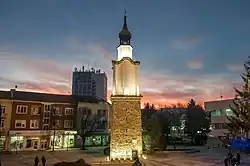 The Clock tower of Botevgrad (Bulgarian: Часовниковата кула в Ботевград) is the symbol of the town and a part of 100 Tourist Sites of Bulgaria. Its clock mechanism still rings every hour with a respective number of bell rings based on the current hour. It was constructed in 1866.[1]