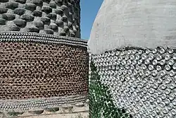 A bottle wall is a wall made out of glass or plastic bottles[1] and binding material. It is a style of vernacular architecture which has been used in areas with limited building supplies, to divert glass from landfills, or for artistic reasons.[2]
