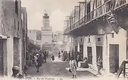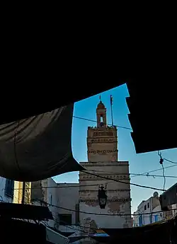 The monument is located in the northern part of the medina. It is surrounded by souks such as Souk El Haddadine from the north, Souk El Ghzal from the south and Souk El Sabbaghine from the east.[2] Thanks to this localisation, the mosque played a major economic role, but also a defensive one.