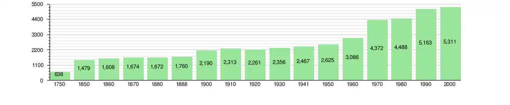 Boudry has a population (as of December 2020) of 6,193.[8] As of 2008, 22.3% of the population are resident foreign nationals.[9] Over the last 10 years (2000–2010 ) the population has changed at a rate of -3.3%. It has changed at a rate of -8.7% due to migration and at a rate of 3.3% due to births and deaths.[10]