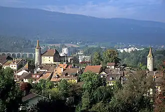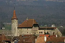 During the Middle Ages it was the capital of the seigneurie of Boudry. Until the 14th Century, the hamlets of Pontareuse and Vermondins were part of the seigneurie. Pontareuse was near the bridge, with which the Roman road of Vy d'Etraz crossed the Areuse, while Vermondins was on a plateau near the modern city of Boudry. In 1282, Pierre de Vaumarcus sold the jurisdiction rights to Girard d'Estavayer. In 1313, his son Rollin sold these rights to count Rudolph IV of Neuchâtel. Two years before, Rudolph IV had seized the Bailiwick of Areuse from Pierre d'Estavayer. Boudry Castle was probably built before 1278 by the Counts of Neuchâtel. So the purchase in 1313 united both of these lands together with the castle lands under the Counts of Neuchâtel.[3]