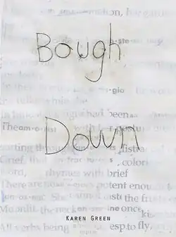 Bough Down is a collection of poetry and small mixed media collages, created by Karen Green. It was published in 2013[1] and won the Believer Poetry Award the same year.[2] In her book, Green explores how contradictory emotions can coexist and processes these sentiments through her prose and art.[1][3]