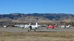 Boulder Municipal Airport (IATA: WBU, ICAO: KBDU, FAA LID: BDU) is a public airport located 3 miles (4.8 km) northeast of the central business district of Boulder, a city in Boulder County, Colorado, United States. It is owned by the City of Boulder[1] and used almost exclusively for general aviation. Its location in the foothills of the Rockies east of the continental divide gives excellent conditions for soaring, and there is extensive gliding activity. It is the base of the Soaring Society of Boulder.