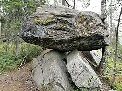In places covered by ice sheets during ice ages, such as Scandinavia, northern North America, and Siberia, glacial erratics are common. Erratics are boulders picked up by ice sheets during their advance, and deposited when they melt.[3] These boulders are called "erratic" because they typically are of a different rock type than the bedrock on which they are deposited. One such boulder is used as the pedestal of the Bronze Horseman in Saint Petersburg, Russia.