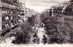 The Boulevard Montmartre (French pronunciation: [bulvaʁ mɔ̃maʁtʁ]) is one of the four grands boulevards of Paris. It was constructed in 1763. Contrary to what its name may suggest, the road is not situated on the hills of Montmartre. It is the easternmost of the grand boulevards.