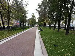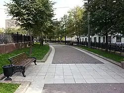 The Boulevard Ring (Russian: Бульва́рное кольцо́; transliteration: Bulvarnoye Koltso) is Moscow's second innermost ring road (the first is formed by the Central Squares of Moscow running along the former walls of Kitai-gorod). Boulevards form a semicircular chain along the western, northern and eastern sides of the historical White City of Moscow; in the south the incomplete ring is terminated by the embankments of Moskva River.