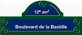 The Boulevard de la Bastille (French pronunciation: [bulvaʁ də la bastij]) is the southwesternmost street of the 12th arrondissement of Paris, situated in the quartier called Quinze-Vingts. It overlooks the east side of the Paris marina, known as the Port de Plaisance or Port de l'Arsenal, with which it forms a boundary with the 4th arrondissement of Paris. (The Port de l'Arsenal is in fact the terminus of the Canal Saint-Martin, which begins at the Place de Stalingrad.) The boulevard also lies directly north (across the Seine) of the border between the 5th arrondissement and the 13th arrondissement of Paris.