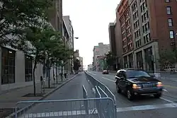 In 1923, an experimental synchronized traffic signal system which allowed a central operator to coordinate signal changes at multiple intersections was tested on the downtown section of the Boulevard.[8] Another novel system was installed in 1931 which signaled a protected left turn automatically when a turning vehicle was detected.[9] In 1924, the Boulevard became part of an alternate bypass route of the Lincoln Highway, whose original route used Bigelow Boulevard into downtown; this left the Boulevard at Forbes Avenue (its original terminus), following Beeler Street, Wilkins Avenue, and Dallas Avenue to the main route on Penn Avenue near East Liberty.[10][11] The Boulevard at Grant Street was once home to Pittsburgh's Chinatown until the 1950s.[12]