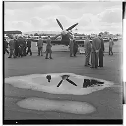 As the Mamba was not flight-ready at the time of the first prototype's completion, it was instead powered by a 820 hp (611 kW) Bristol Mercury 30 radial engine during its initial test flights.[6][1] Thus powered, it first flew on 30 May 1947, after teething issues with the undercarriage had been resolved during ground testing. The second prototype, powered by the intended Mamba engine, first flew on 17 May 1948, becoming the world's first single-engined turboprop aircraft to fly.[1] Early handling trials at MOD Boscombe Down revealed the aircraft to possess relatively gentle and easy flight characteristics across all typical circumstances, with only minor suggestions for improvements being produced, such as the lack of a port-side walkway and directional snaking unbecoming to a gun platform.[7]