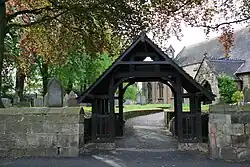 The wooden Lych-gate, which now forms the main entrance to the church from Boulton Lane was constructed just after the first World War as a memorial to the local servicemen of Great War. The structure was built by Joseph Thomas Fisher, a local carpenter and joiner who also served in the Great War.[7]