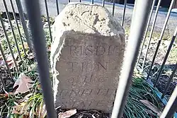 In 1915, various local chapters of the Daughters of the American Revolution (DAR) began to place fences around each of the markers.[2][10][12] The DAR also placed at the exact center of the original federal territory a marker stone that was located about a half of a mile from the White House and was near the DAR's Memorial Continental Hall.[10]