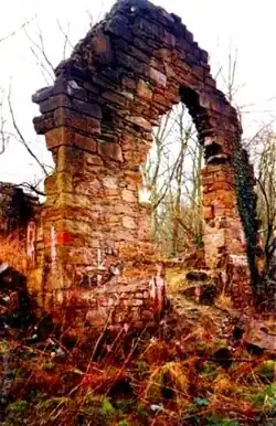 Three antiquated, but currently unidentified, ruined buildings stand deep within the woods of the original estate. In the early 1980s, two arches stood side by side in the northeastern quarter. These are known to have served some purpose involving the coming and going of traffic. The oldest entrance (and subsequently the oldest driveway) once led the visitor directly to the twin arches. Sadly, only one of these fine structures still remains, while the other has been progressively vandalised over the last two decades.