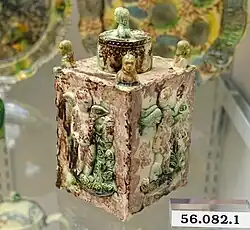 Pottery is known to have been produced in the area since the early part of the 18th century as a kiln containing several unfinished and kiln-damaged saltglazed pots dated from 1760 was discovered in 1932 in Fore Street, Bovey Tracey.[2][3] The kiln has since been moved to The Bovey Tracey Heritage Centre and the pots to The Bovey Pottery Museum where they can be seen on display.