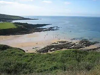 There are two beaches at Bovisand, the first named Bovisand Bay is the northernmost separated from the southernmost, Crownhill Bay, by rocks and a grass bank, commonly known as "Grassy". Both beaches are accessible only by steps, and are served by a cafe and a small tourist shop, but have no lifeguards.