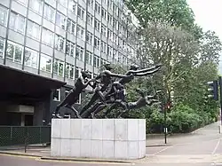 Harold Samuel, founder and chairman of Land Securities, commissioned a sculpture from Jacob Epstein: his last sculpture Rush of Green (also known as The Bowater House Group, The Return of Spring, The Family, or The Pan Group) was completed shortly before his death in 1959 and installed in 1961 on a plinth separating the carriageways beneath the building. A maquette of the sculpture was exhibited in the foyer of the building.[1]