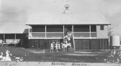 In the early 1950s Bowen Harbour was very busy and Bowen was becoming more prosperous due to development of Collinsville mine in the Bowen hinterland.[18] Due to population growth spurred by the increase in coal mining and industries,[19] school enrolment was reaching record numbers. In order to accommodate the increase, between 1953 and 1960 accommodation at Bowen State School was almost doubled. This included the extension of the high top for a science classroom, extension of the former girls' school building by two classrooms, extension of the infants' wing with three classrooms, extension of the vocational training building, enclosing verandahs for further accommodation, and building new toilets within the grounds. By 1954 a new building was on the school site, the Hall. The history of this building is unclear and it appears older than the 1950s.[2]