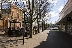 Bowral (/ˈbaʊrəl/)[2] is the largest town in the Southern Highlands of New South Wales, Australia. It is 132 kilometres (82 mi) south-west of Sydney and 169 kilometres (105 mi) north-east of Canberra. It is the main business and entertainment precinct of the Wingecarribee Shire and the Southern Highlands.