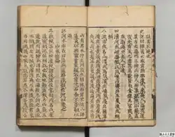 There are two different editions of the Bowuzhi, respectively dating from Song dynasty (960-1279) and Ming dynasty (1368-1644) copies. Both divide the text into 10 chapters () and comprise nearly the same material, but they differ in organizing the sequence of the 329 items and the presence of 38 topic headings in the Ming copy.[20] Both editions include the two early Bowuzhi commentaries; 20 comments by Zhou Riyong 周日用 (fl. 12th century) and 7 by an unknown author surnamed Lu, Lushi 盧氏.[21]