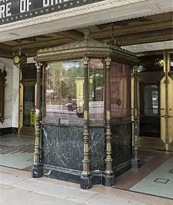 A box office or ticket office is a place where tickets are sold to the public for admission to an event. Patrons may perform the transaction at a countertop, through a hole in a wall or window, or at a wicket. By extension, the term is frequently used, especially in the context of the film industry, as a metonym for the amount of business a particular production, such as a film or theatre show, receives. The term is also used to refer to a ticket office at an arena or a stadium.[1]