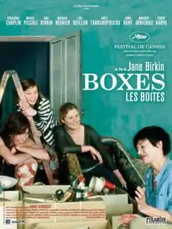 Boxes (French: Les Boites) is a 2007 French film and the directorial debut of Jane Birkin. Birkin also stars alongside Geraldine Chaplin and Michel Piccoli. The film is based on Birkin's own family life, chronicling three marriages and the three children she bore from these marriages. The title alludes to the way in which she compartmentalises these relationships and stages of her life.[1] The film was nominated for the Grand Prix at the Bratislava International Film Festival. The film premiered in the Un Certain Regard portion of the 2007 Cannes Film Festival on 21 May.[2] It was released in France on 6 June 2007.