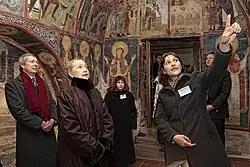 A name, possibly that of a painter, was discovered during restoration works in 2006–2008.[2] National History Museum director Bozhidar Dimitrov stated: "The renovation revealed a rare inscription under a layer of plaster on one of the church walls: 'I, Vasiliy inscribed'. The 13th-century 'Boyana master' was the only painter among the kings and nobles whose names were regularly read out during sermons at the church." Restorator Grigoriy Grigorov stated "The Christian Orthodox religion forbids the painter from manifesting himself, as in the eyes of the priests it is God who guides his hand. But this painter inscribed his name, knowing that the believers could not see it." Other historians and archaeologists are less convinced that the inscription identifies the "master", since it could equally have been left by an assistant.[2]