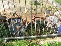 The side facing the sea with the 'hooded' light housings and part of the old 'black balls' mast lying on the ground.