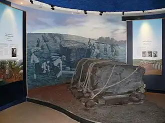 All access to Newgrange and Knowth is by guided tour only, with tours beginning at the Visitor Centre, opened in 1997 in Donore, County Meath.[4] The tourist visitor centre is located on the south side of the river Boyne, and the historical site is located on the north side of the river and is accessed via a shuttle with a tour guide.