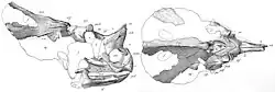 All that was found were incomplete and jumbled remains of five juvenile individuals of about 1.5 m (5 feet) in length.[3] It has been speculated that these juveniles may have been nest mates that stayed together after hatching.[3] The holotype specimen is USNM 7951, a partial skull. The paratypes are USNM 7952, a snout, USNM 7953, a partial skeleton with skull and USNM 7957, a foot. The material is disarticulated but the preservation is excellent.[5] In 1917 Gilmore published a monograph on Brachyceratops in which a reconstruction of the skeleton as a whole was given.[6]