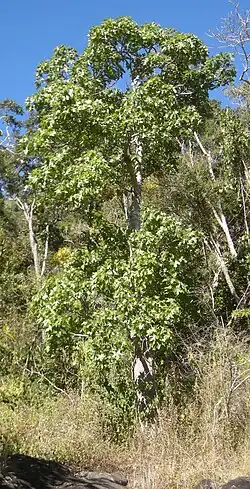 - ^ The genus Brachychiton was traditionally placed in the family Sterculiaceae, but that family, along with Bombacaceae and Tiliaceae, has been found to be polyphyletic and is now sunk into a more broadly-defined Malvaceae.[1]