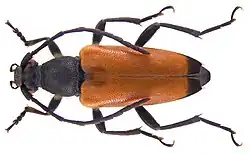 Brachyleptura fulva is a species of longhorn beetle in the subfamily Lamiinae found in Crimea and France.[1] The colour of the species is black, with orange wings.[2]