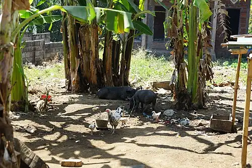 Brachyspira pilosicoli is one of the causative agents of porcine intestinal spirochetosis.[4] The disease is seen most frequently during times of stress such as during weaning and mixing.[4] Pigs suffering from intestinal spirochetosis have characteristic diarrhea with loose, watery feces often described as having a wet cement appearance.[29][7] Other clinical signs include reduced productivity, hemorrhagic colitis, and bloody or mucoid diarrhea.[4][2] Diarrhea typically resolves quickly but may persist in some animals.[2] On post-mortem, the large intestine may be enlarged and have a thickened mucosa.[7] The decreased feed intake and body weight gain associated with the disease cause significant economic impacts for producers.[2] The most common sources of infection include contaminated pens, feed and water, as well as contaminated personnel and equipment.[2]