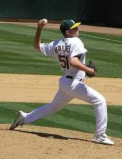 On March 26, 2006, the Diamondbacks traded Halsey to the Oakland Athletics for Juan Cruz.[5] Halsey made the Athletics' opening-day roster as a middle reliever, then was inserted into starting duty in May with space made available by injuries to starters Esteban Loaiza and Rich Harden. Halsey pitched in six starts, with a record of 1–2, an ERA of 5.63 and with opponents batting .305 against him.