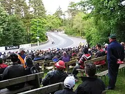 It is a landmark on the Isle of Man TT road-race course, situated in the countryside close to the outskirts of Douglas town where motorcycles slow to negotiate a left-right 'S' bend over the river. A traditional viewing spot with seating, in common with other vantage points around the local Douglas area, it is within walking distance of the Ferry Terminal where sea ferries from England, Scotland and Ireland traditionally disembarked day-trip or longer-stay passengers.