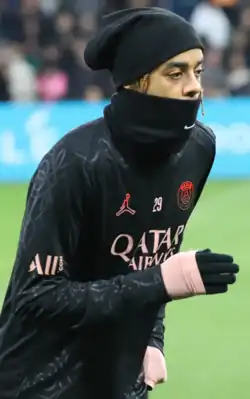 On 31 August 2023, Barcola joined fellow Ligue 1 club Paris Saint-Germain (PSG) for a reported €45 million fee,[16] signing a five-year contract with the club.[16][17] He was assigned the number 29 jersey.[17] On 3 September, Barcola made his debut as a substitute in a 4–1 away win over his former club Lyon. He became the 500th player to make an appearance for Paris Saint-Germain.[18] On 24 September, Barcola made his first start for PSG in a 4–0 win over Le Classique rivals Marseille.[19] On 29 October, he recorded his first goal contribution for the club, an assist for Warren Zaïre-Emery's opening goal in a 3–2 away win over Brest.[20] On 9 December, Barcola scored his first goal for PSG in a 2–1 win over Nantes.[21]