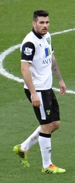Despite ongoing negotiations with Leeds, Johnson was unable to agree a new contract and on 1 July 2011 signed a three-year deal with Norwich City.[24] He was handed squad number 4, which was vacated by Matthew Gill when he was released by the club.[25] Johnson made his Norwich debut in the club's first home match of the Premier League season.[26] Johnson scored his first Norwich goal against Bolton Wanderers on 17 September 2011 at the Reebok Stadium with a "classy header".[27]