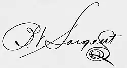 On December 15, 1891, Sargent married Rose Littlefield, the adopted daughter of Hiram Corey, in Salinas.[5] The couple had three children. Sargent served as the grand vice chancellor of the Knights of Pythias and is also affiliated with the Benevolent and Protective Order of Elks, Native Sons of the Golden West, Fraternal Brotherhood, and other organizations.[1]