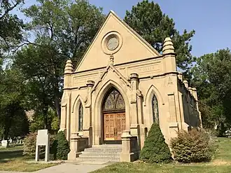 The chapel includes a tomb of the late Idaho governor and U.S. senator James H. Brady.[2]